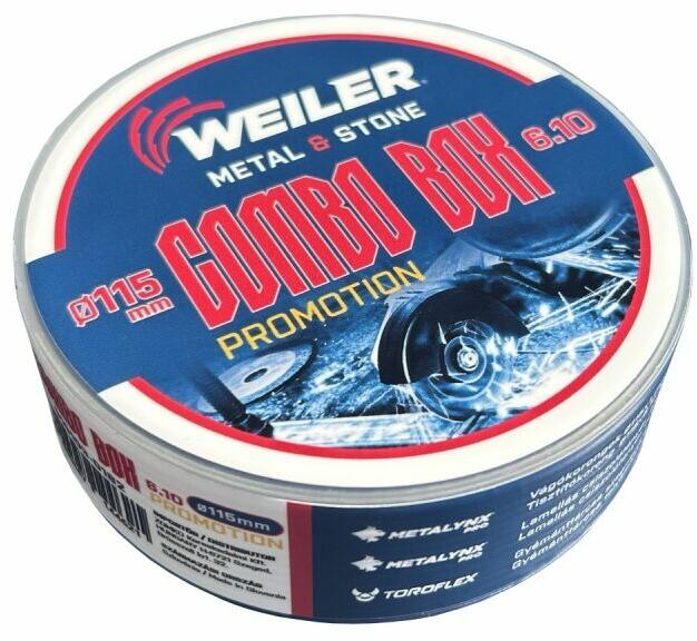 A WEILER COMBO BOX teljesen egyedi, a felhasználók széleskörű igényeire hangolt 10 részes összeállítás, amely a sarokcsiszolókhoz használatos vágó- és csiszoló korongokat, gyémánttárcsákat tartalmazza 115mm-es változatban. A készletben található 6 szerszám fém, fa felületek és anyagok, valamint különböző építőelemek mint, tégla, beton, lágy gránit; cserép; b