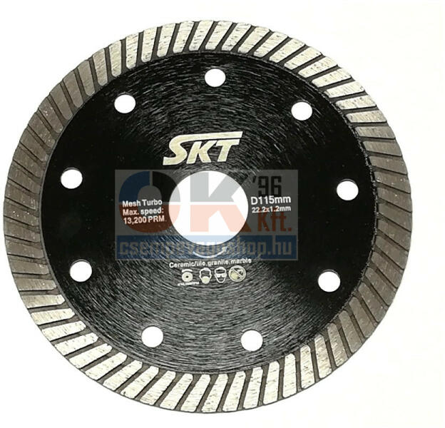Átmérő 115 mm. Furat 22,2 mm. A szegmens magassága 7 mm.