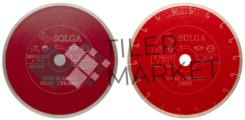 Solga gyémántlapkakészlet 250 mm átmérővel kemény kerámia vagy gres nedves vágásához; Lapátátmérő: 250 mm; Hűtéssel ellátott építőipari fűrészekhez tervezve. Készlet kedvezményes áron.