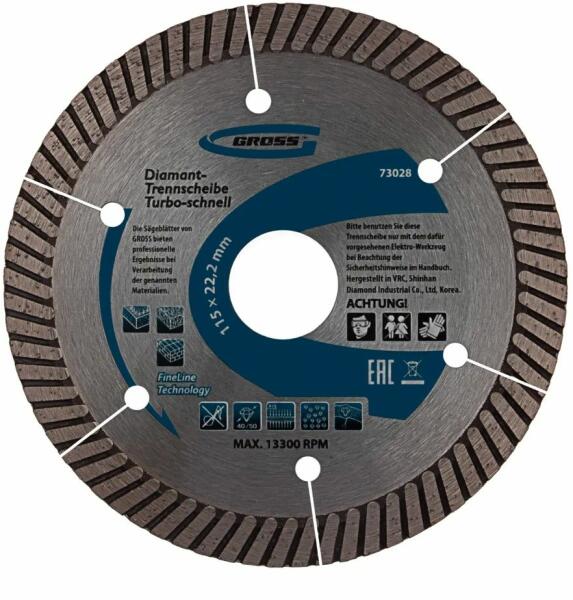vastagság: 2.3 mmfordulat: 12500/ mindolgozó réteg: 7 mmbefogás: M14/22,23 mmalkalmazás: kő, beton vágásraEAN kód: 4044996044316