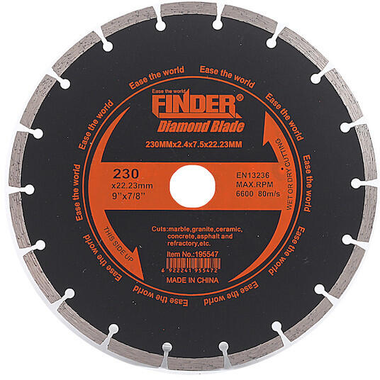 ABRABORO Gyémántszemcsés vágókorong No. 15 Extra vékony (1,5 mm, ill. 2,0 mm) tárcsa furaterősített alaplappal Folyamatos vágóél, egyedi élgeometriával, gyors és tiszta vágás Kiválóan alkalmas gres (kőporcelán), kemány kerámialapok, gránit, cotto lapok, terazzo és porcelán vágásához Száraz és vízes vágáshoz egyaránt javasolt Szegmensmagasság: 10 mm
