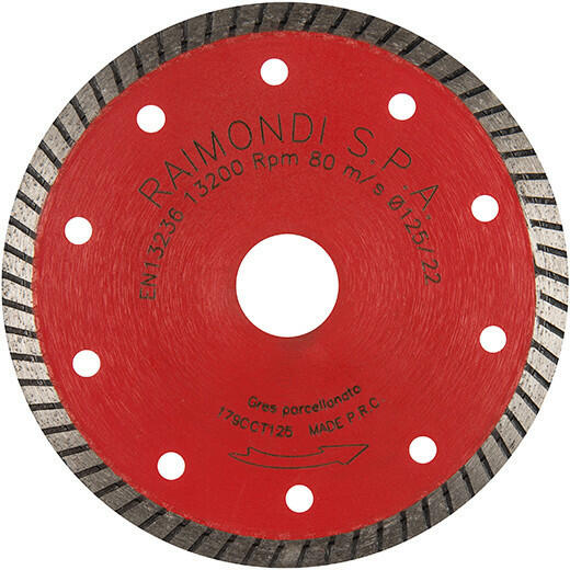 Raimondi professzionális gyémánt vágókorong "turbo", 125 mm-es átmérővel, minden szabvány méretű sarokcsiszoló géppel(flex) kompatibilis. Ajánlott gres járólapok vágására. Az ár a készlet erejéig érvényes!