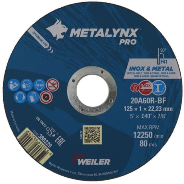 Prémium minőségű korong, magas hőállóságú nemeskorund szemcsével Prémium minőségű korong, magas hőállóságú nemeskorund szemcsével Milliméterpontos, extrém gyors vágás, sorjaképződés nélkül Vékony lemezek, vékony falú csövek és profilok, rozsdamentes/saválló acél és nemvas fémek vágásához
