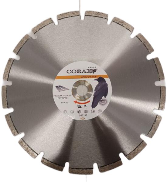 A Corax Prémium aszfalt és frissbeton gyémánt vágókorong kiváló minőségű, lézerrel hegesztett szerszám a tartósságot, a pontosságot és a biztonságot ötvözi, hogy megfeleljen a professzionális felhasználók igényes igényeinek főként útépítésben és egyéb aszfaltmunkákban. A szegmensek alávágás elleni védelemként szolgálnak, hogy megakadályozzák a tárcsa besz