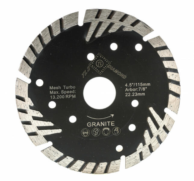 TLS CYCLONE TURBO gyémánt vágókorong Átmérő: d=125 mm Furatátmérő: d=M14 mm Vágószegmens magasság : 10 mm Vágó szegmens vastagság: 2.5 mm Alkalmazás: száraz és vizes használat Alkalmazási terület: Gránit, márvány, természetes kövek, beton, tégla, csempe, kőműves anyagok, falazat vágásához (mélyvégésokhoz)és csiszolásához TLS CYCLONE TURBO gyémánt vágókoro