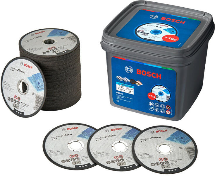 A Standard for Metal vágótárcsával megbízhatóan vághat át fémet A Bosch vágókorongjai megfelelnek a legmagasabb biztonsági követelményeknek, például az EN 12413 szabványnak Az alumínium-oxid tárcsa általános használatra készült acélon Tengelyfurat átmérője: 22,23 mm Vastagság: 1 mm Átmérő: 125 mm
