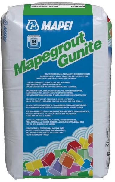 Egykomponensű, normál kötésidejű, szárazkeverékként használandó cementkötésű habarcs lőttbeton technológiás betonjavításokhoz. A Mapegrout Gunite beton burkolatú alagutak, megrongálódott hidak, vízügyi létesítmények, tározók, ipari beton szerkezetek, stb. felületi javítására használható. A Mapegrout Gunite igen jó mechanikai jellemzői miatt szerkezeti javításo