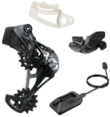 SRAM X01 Eagle AXS 1x12-sebességes upgrade-szett Segítségével vezeték nélküli elektronikus váltást építhetünk a kerékpárunkra. A szett a következő elemeket tartalmazza: SRAM X01 Eagle AXS X-HORIZON 12 sebességes hátsó váltó SRAM Eagle AXS 12 sebességes hátsó váltókar (jobbos) SRAM AXS akku töltő és kábel SRAM váltóbeállító tartozék (az akkumulátor nem tartozék