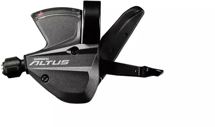 Shimano Altus SL-M370-L Rapidfire váltókar, csak bal, 3s, bilincses rögzítés, kijelzővel, sötétszürke, doboz nélkül Shimano Altus jó ár-érték arányú rapidfire váltókar bal oldalra első váltóhoz, hobby trekking vagy MTB kerékpárokra elől 3 lánctányéros 21, 24 vagy 27 sebességes Shimano pozicionált rendszerekhez. Bilincses rögzítés, 22,2 mm-es kormányra Jól láthat