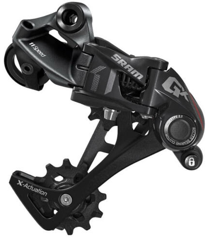 Sram GX MTB hátsó váltó, 1x11s, hosszú kanalas, fekete-piros X-Actuation bowdenhúzás: határozott és egyenletes váltómozgás a teljes áttételtartományban X-Horizon tervezés: csökkentet váltáserő, megelőzi a fantomváltást és a kanál csapkodását CageLock: biztosítja a könnyű kerékkivételt és berakást a láncfeszítő rugó oldhatósága révén 12 fogas X-Sync váltó