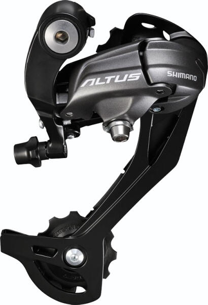 9 fokozatú MTB hátsó váltó. A szélesen elhelyezett forgáspontok merevebb és pontosabb váltást eredményeznek.