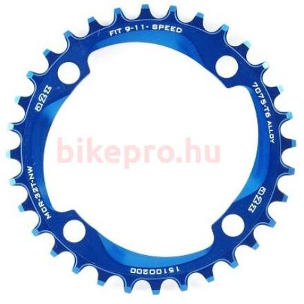 a2Z MTB első lánckerék, 32T, 4x96 mm (aszimmetrikus), 1x9-12s, narrow-wide, alumínium, kék A kép illusztráció Alumínium lánctányér egy sebességes MTB első hajtóműhöz. A speciális fogkialakítás minimalizálja a láncleesés kockázatát. Segítségével 1x9, 1x10, 1x11 vagy 1x12 hajtásrendszer érhető el amellyel kiküszöbölhető az első váltásokkal járó láncleesés ko