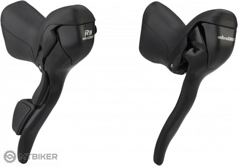 microSHIFT R8 SB-R480 váltó/mech. brzd. páky Az R8-as sorozat sebességváltó- és fékkarja külső kábelelvezetéssel, a fel- és lekapcsolást külön karokkal használja . A fékkar teljesen rögzítve van, ami megakadályozza a véletlen váltást.