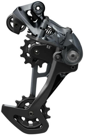 Sram XX1 Eagle Lunar MTB hátsó váltó, 1x12s, hosszú kanalas, fekete-szürkeCsúcskategóriás MTB váltó 12 sebességes rendszerekhez. Kompatibilis más Sram Eagle rendszerelemekkel. Fokozat: 12s Kanálméret: hosszú, 10-50-es és 10-52-es kazettával kompatibilis Technológiák: X-actuation a gyors és koszfüggetlen váltásért CageLock: a könnyű kerékkivételhez és berakáshoz Rolle