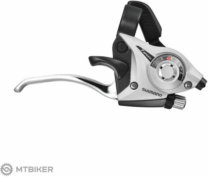 ST-EF fékkar kombinált váltókar kétujjas markolattal a fékkaron. Ennek a tapadásnak köszönhetően a kényelmes és stabil fékkaros váltás elsősorban az MTB kategóriás motorokhoz készült. Típus: MTB, Csomag teljes súlya: 183g, 7 sebességes, Jobb, EZ-fire Plus, Rögzítés típusa: A hüvelyre, jelzővel, fekete, Anyaga: Alumínium / Acél / Műanyag