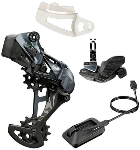 SRAM XX1 Eagle AXS 1x12-sebességes upgrade-szett Segítségével vezeték nélküli elektronikus váltást építhetünk a kerékpárunkra. A szett a következő elemeket tartalmazza: SRAM XX1 Eagle AXS X-HORIZON 12 sebességes hátsó váltó SRAM Eagle AXS 12 sebességes hátsó váltókar (jobbos) SRAM AXS akku töltő és kábel SRAM váltóbeállító tartozék (az akkumulátor nem tartozék