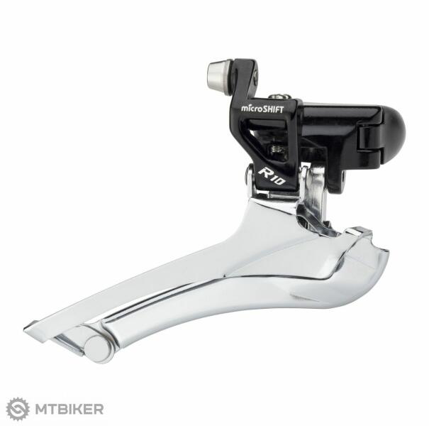 microSHIFT R10 FD-R712-F-BK váltó Az országúti kerékpározásra szánt Presmyk R10 2x10 Down-Pull technológiát használ. A módosított állítócsavarok könnyű hozzáférést tesznek lehetővé a hibátlan működés beállításához .
