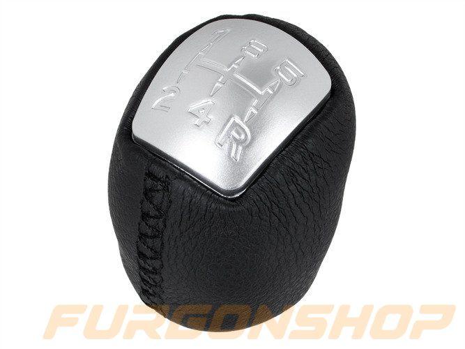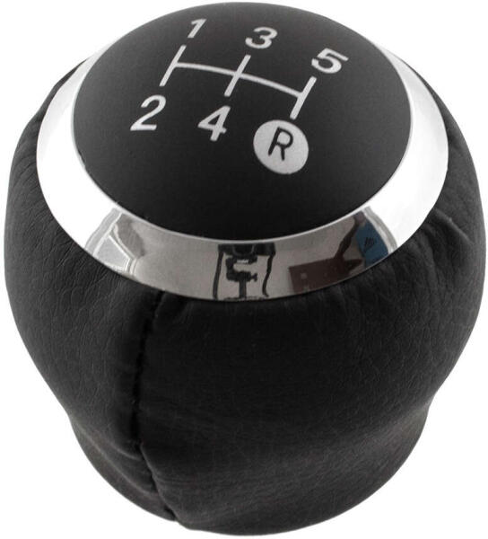 Iveco Daily váltógomb, 2006-17 között gyártott típushoz. Fekete bőr, ezüst színű matt króm betéttel. Kiváló minőségű, új, utángyártott termék, a 42561576 gyári számú alkatrész helyettesítője. 5 sebességes.