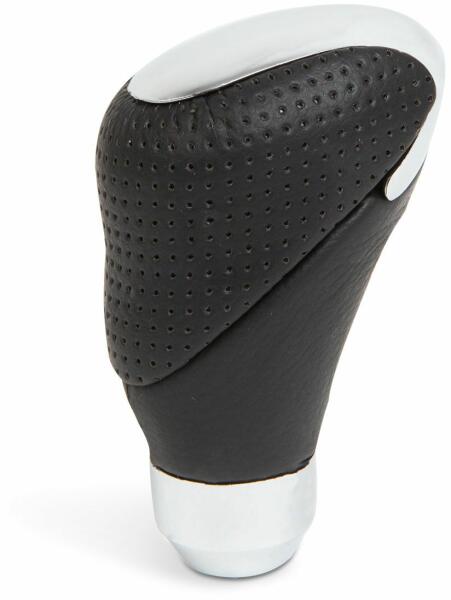 Sebességváltó gomb fekete bőr - fekete varrással GSK01 | AMIO Kiváló minőségű bőrből készült univerzális váltókar, erős kárpitszálakkal díszítve, érdekes, sportos megjelenést kölcsönöz a jármű belsejének. Minden olyan személygépkocsi-modellben használatos, ahol nincs emelt hátrameneti fokozat. A gomb a különböző átmérőjű hüvelyek egyikével van rögzítve
