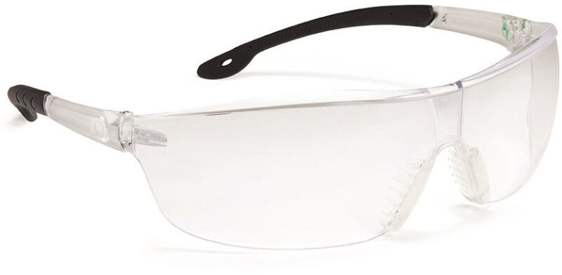 Átlátszó, ívelt polikarbonát lencsék. Jól illeszkedik az arc vonalához, ezáltal kiváló takarást biztosít. Vékony, sportos, fekete szárak EN166 1F