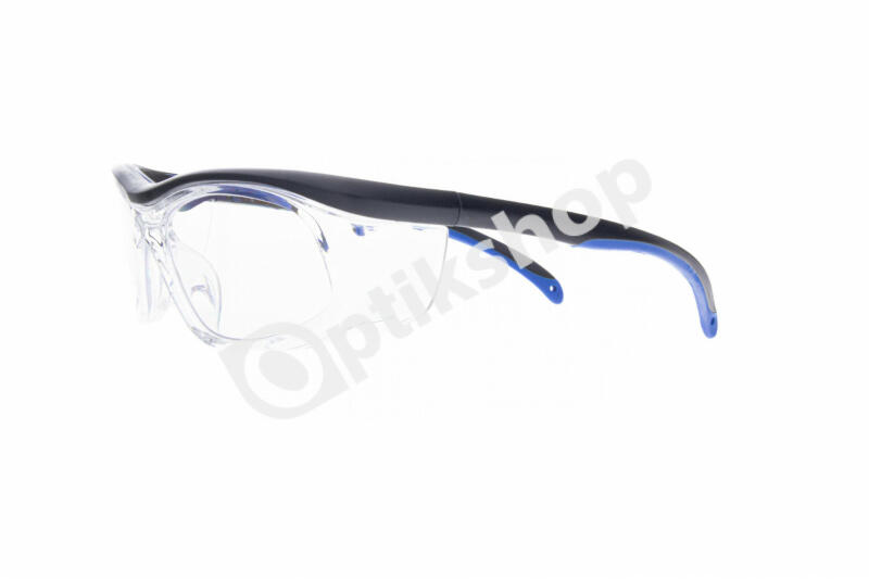 Műanyag, dioptriázható munkaszemüveg átlátszó, oldalsó védelemmel ellátva. Szára műanyag. Széles orrtámasz, jól illeszkedik. Ezek a munkaszemüvegek minden területen kiváló védelmet nyújtanak.