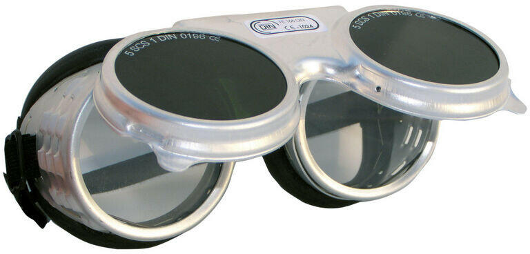 Hőálló alumínium keretes, felhajtható hegesztőüveg KERET: hőálló alumínium RÖGZÍTÉS: állítható rugalmas gumipánttal LENCSE: ø50mm átmérőjű, IR5-ös cserélhető üveg lánghegesztéshez szellőzés: szellőzőlyukak a keret oldalán CSOMAGOLÁS: 100/10 EU szabvány: EN166, EN169, EN170, EN175 Minősítések EN166 EN170 EN169 EN175