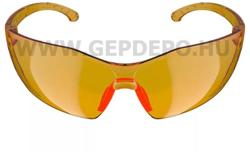Egyterű polikarbonát szemüveg integrált polikarbonát orrnyereggel Egyterű polikarbonát szemüvegHajlékony lapított szárvégekIntegrált polikarbonát orrnyeregKényelmesebb használat ipari védősisak és hallásvédő fültok együttes viselése eseténOldalvédelemPolikarbonát lencse Szabványok:2016/425/EU RENDELET EN166:2001 Személyi szemvédő eszközök - Specifikációk 1 FTLen