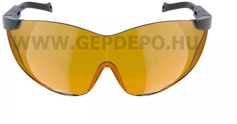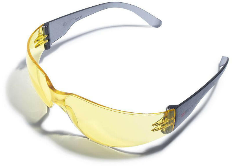 Védőszemüveg, PC lencsével, PC kerettel, sárga lencse. Polikarbonát lencse Lencse színével megegyező színű szár Szín: sárga Minősítés: CE, EN166