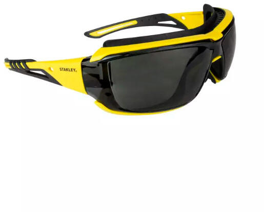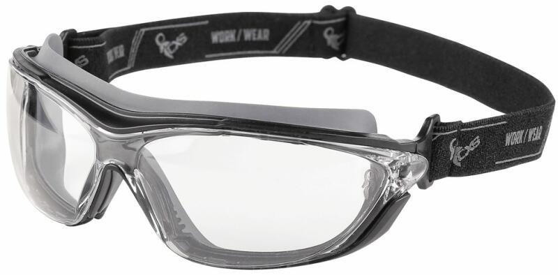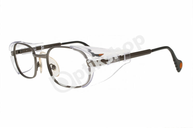Fém fegyverezüst színű, dioptriázható védőszemüveg átlátszó, oldalsó védelemmel ellátva. Szárvége szürke műanyag, narancssárga puha párnázattal a sarkában, melyen a márkanév kapott helyet. Ezek a munka szemüvegek minden területen kiváló védelmet nyújtanak.