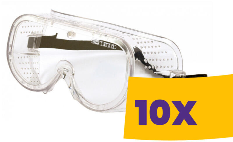 A zárt védőszemüveg kiváló minőségű polikarbonátból készült, modern kivitelben. Ergonomikus kialakítású és állítható rugalmas pánttal rendelkezik, amely lehetővé teszi a korlátlan mozgást és látást. Védelmet nyújt UV385 ellen. A védőszemüveg körül TPE bélés található, amely biztosítja a megfelelő tapadást az arcra, valamint a könnyű mosást és fertőtle