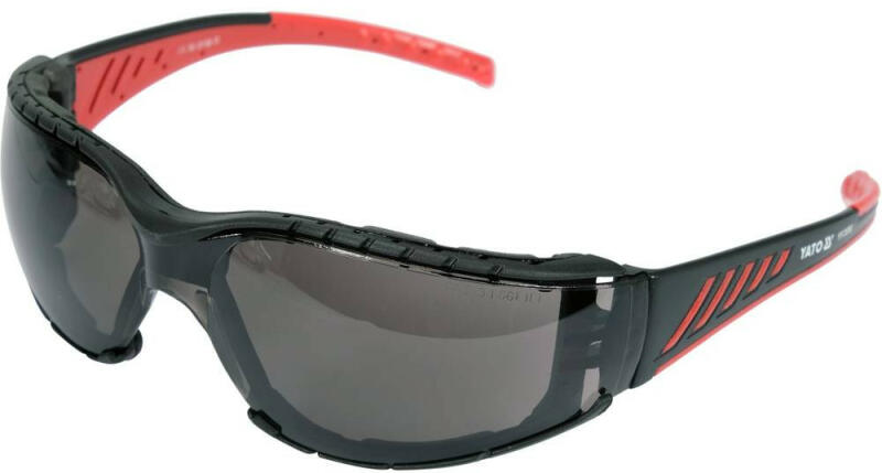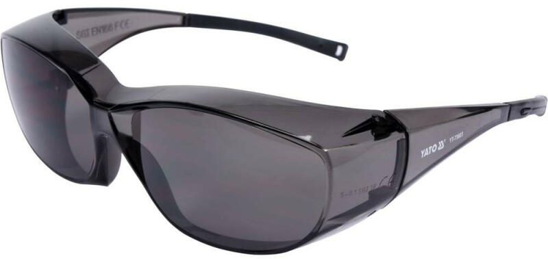 Védőszemüveg füstszínű, UV szűrővel, lencséket pára- és karcolásgátló bevonat borítja. YT-73703 védőszemüveg szürke lencsékkel, keretbe helyezett fokozott kényelem érdekében. A szürke árnyalat a sötétség mértékétől függően korlátozza az erős fény bejutását. A védőszemüvegben az ilyen típusú szűrőt napfény-visszaverődés elleni védelemnek nevezik. A