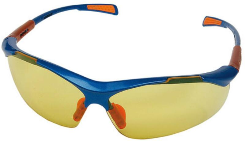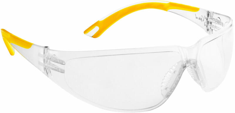 Sportos védőszemüveg polikarbonát lencsékkel. Sportos védőszemüveg az EN166 szabvány szerinti 1FT polikarbonát lencsékkel. A lencse rendelkezik párásodásgátló és karcálló bevonattal. Ellenáll az alacsony energiájú repülő részecskéknek. A sárga lencsék védelmet nyújtanak az UV sugárzás ellen az EN 170 szabvány szerint. A füst színű lencse napfényszűrős az EN 1