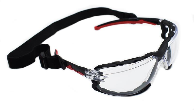 Könnyű védőszemüveg polikarbonát lencsékkel. Nagyon könnyű védőszemüveg az EN166 szabvány szerinti 1FT polikarbonát lencsékkel, eltávolítható TPR betétekkel, amely kitölti a helyet a szemüveg és az arc között, így jelentősen csökkenti a szem sérülésének lehetőségét repülő szemcsékkel szemben. A lencse rendelkezik párásodásgátló és karcálló bevonattal. E