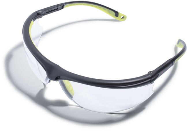 Funkcionális biztonsági szemüveg többféle lencseváltozattal. Polikarbonát lencse. Állítható oldalsó részek kemény és puha műanyag keverékéből. Puha orrhíd. Tiszta, sárga, narancssárga vagy szürke lencse. Tiszta, sárga, narancssárga = UV-védelem. Szürke = UV400. HC = Karcálló lencse. HC / AF = karcálló és páramentes lencse. Megfelel az EN 166 szabványnak, 1F (HC) os