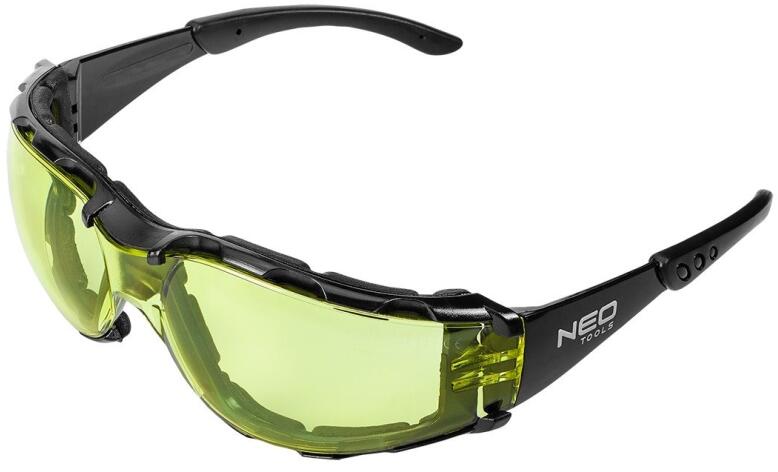 NEO védőszemüveg sárga lencsékkel kifejezetten azoknak a munkavállalóknak ajánlott, akik olyan környezetben dolgoznak, ahol nagy sebességű részecskék vagy alacsony ütközési energiájú ütések jelenthetnek veszélyt. A habbetét és a gumiból készült csúszásmentes szárak biztosítják a megfelelő illeszkedést és viselési kényelmet. A sárga lencsék jobb színfelismeré