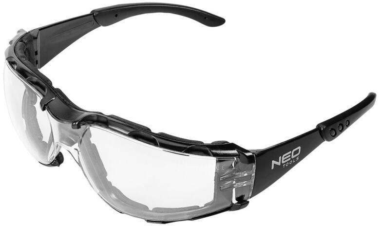 A NEO TOOLS 97-520 védőszemüveg fontos jellemzői a következők:, , Márka: NEO TOOLS, Típus: Védőszemüveg habbetéttel, Cikkszám: 97-520, Szín: Fehér lencsék, Ellenállási osztály: FT osztály (nagy sebességű részecskeütésekkel és alacsony ütközési energiával szembeni ellenállás), Hőmérséklet-tartomány: -5°C és 55°C között, UV-szűrő: 2C-1.2 (védelem az UV-sug