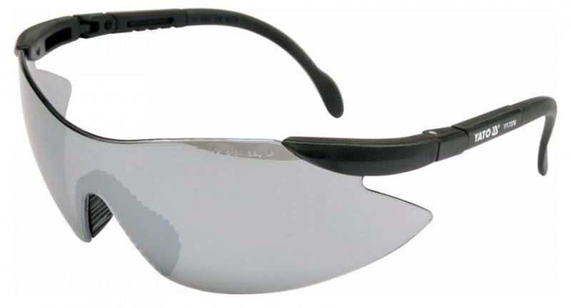 YT-7376 modern kialakítású védőszemüveg, amely a szem védelmére szolgál kézi és gépi munkáknál, pl. csiszolás, fúrás, vésés stb. esetén. optikai osztály: 1 - a legmagasabb látásminőség, folyamatos munkához ajánlott káprázás elleni szűrő: jelölés 5-3.1 lencse anyaga: polikarbonát váz anyaga: nejlon tükörlencsék orrpárnák szög és kar hosszának beállítás