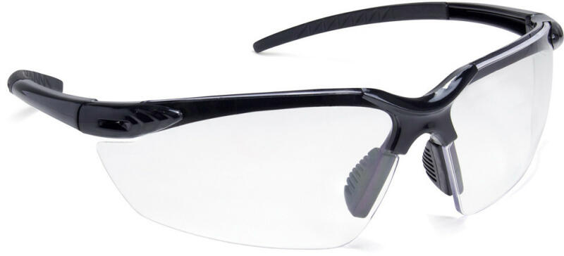 PSI VÍZTISZTA SZEMÜVEG: SZÁR: polikarbonát + puha PVC szárvég KERET: polikarbonát LENCSE: az EN 166 szabvány szerint minősítetten karcmentes (K), extrém hőmérsékleti viszonyok közt is használható (T), ívelt, polikarbonát lencse, 2,4 mm vastag, UV védelemmel. 1. optikai osztály ? állandó hordásra ajánlott OLDALVÉDO: ívelt, egybeépített SÚLY: nagyon könnyű, 26 g CSOMA