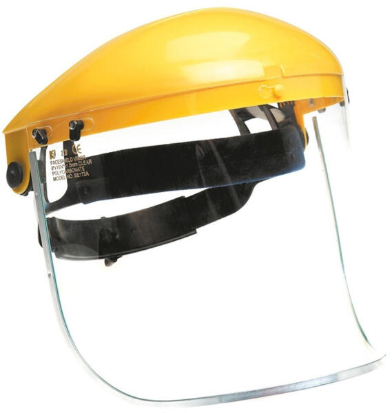 Egész arcot védő, fejpántos víztiszta PC pajzs 1B osztályú polikarbonát látómezővel