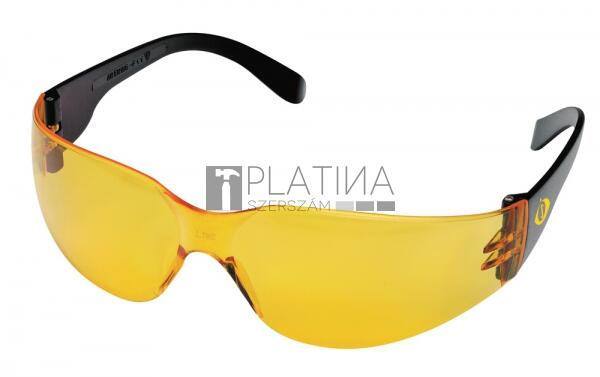 Védőszemüveg, polikarbonát, sárga üveg, nylon szár, állítható szárhosszúság és hajlásszög, gumi szárvég, karcálló, CE Védőszemüveg, polikarbonát, sárga üveg, nylon szár, állítható szárhosszúság és hajlásszög, gumi szárvég, karcálló, CE