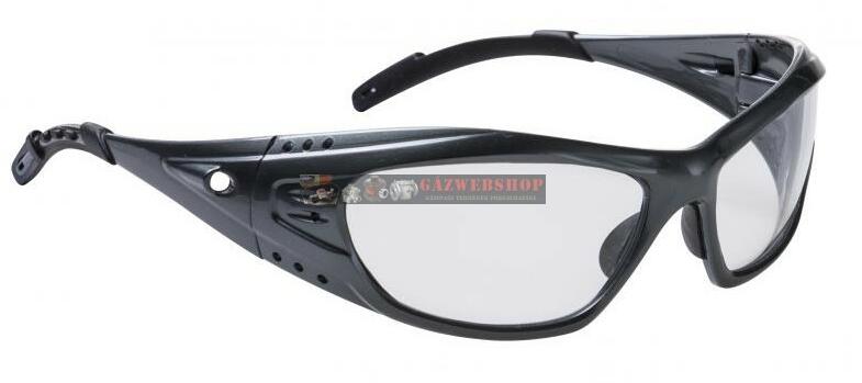 Anyag: Színtelen polikarbonát lencsék. Állítható elasztikus szalag a tökéletes illesztéshez. Többféle nyílás a annak érdekében, hogy a belső rész ne párásodjon be. Átlátszó polikarbonát lencsék. Speciálisan kiépített a szemek védelmére erősebb mechanikai hatások ellen. NORMA: EN 166