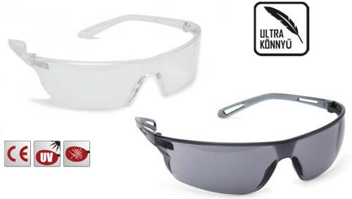 Átlátszó lencsés könnyű védőszemüvegA védőszemüveg főbb jellemzői A könnyű, körbefutó polikarbonát keret maximális védelmet biztosít. Párásodás- és karcolásgátló lencsebevonat. Ferde lencseszegély a szem felső részének további védelméért. A keret nélküli lencse kialakítása széles látómezőt és akadálytalan kilátást biztosít. Puha, formázott TPR fü