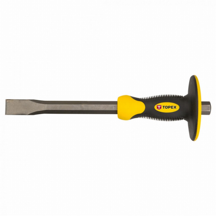 A TOPEX véső kemény anyagok vésésére, zúzására szolgál. Lapos élben végződik, kiváló minőségű, nagy szilárdságú króm-vanádium acélötvözetből készül. A kézből való kicsúszást megakadályozó, a munka kényelmét növelő ergonómikus markolattal. Előnye a kezeket az ütésektől védő kézvédő gallér. A TOPEX márka ezermestereknek készül.
