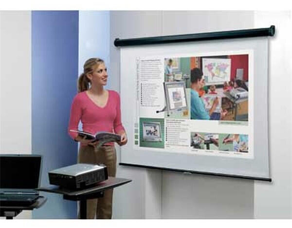 Egyszerűen felszerelhető, közép méretű tokozattal ellátott vetítővászon. ÜzletiJelleg: 5 cm fekete sávkeret, fehér acél tok, , S vékony szövet, 3 m legnagyobbszélesség, 3 m vezetékes kézi kapcsoló, , vezetékes kézi kapcsoló, falra és mennyezetre is sz...