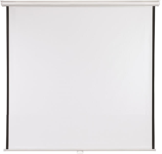 Vetítővászon fali 1:1, 180x180cm ValueLine FRANKEN Falra vagy mennyezetre szerelhető vetítővászon. Matt fehér vászonfelület, amely valósághűen adja vissza a színeket. Fekete képernyő szegély biztosítja a vetített kép tiszta elhatárolását. Feltekerő mechanizmus. Könnyen telepíthető. A kidolgozott roll-up koncepció egyszerű kezelhetőséget biztosít. Katalóguskód: 307