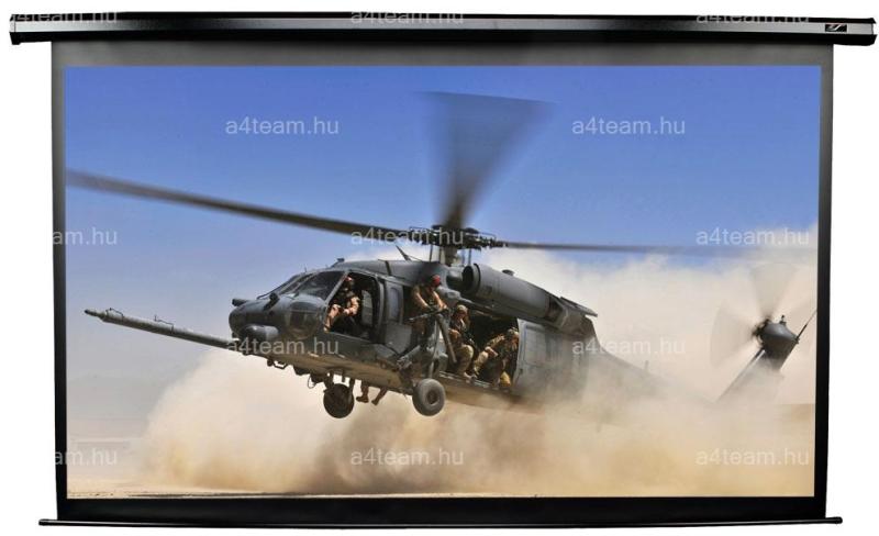 Tulajdonságok: Típus: motoros fali vászon Váz színe: fekete Anyag: Alumínium Elhelyezés: falra vagy mennyezetre Átmérő: 100" (2.54 m) Képarány: 16: 9 Látószög: 160 ° Feszültség: 110VAC, 60Hz Vezérlés: infravörös távirányító Méret és súly: Teljes méret: 167,4 x 254,5 x 7,9 cm Súly: 12.5 kg
