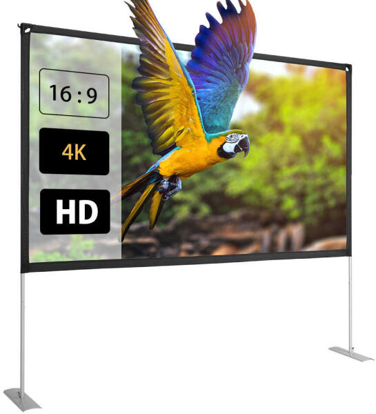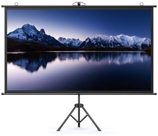Hordozható vetítővászon házimozihoz. Stabil állvány, 4K felbontás, 160°-os betekintési szög, 16:9 képarány, széles kompatibilitás, levehető vászonBetekintési szög 160°Képarány 100" 16:9Konzol anyaga Alumínium csőKépernyő anyaga PVCVetítési méret 2214*1245mmcsomag mérete 830*170*90mmSúly Nettó tömeg: 2,9 kg, bruttó tömeg: 3,3 kgA csomag tartalma 1x vetítővászon