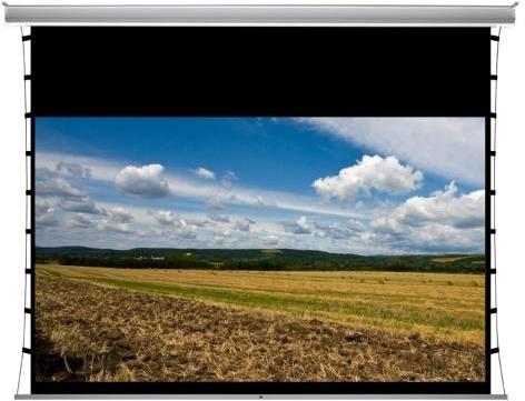 Nem csak webshop, 20 éves tapasztalat, bemutatóterem. Ne a falra vetítsen, egy jó projektorhoz illik egy jó vászon! Minimum 10% minőségjavulást érhet el a tökéletesen fehérre festett falhoz képest. Fehér acél tokos, motoros mozgatású, álmennyezetbe építhető, 1,0 nyereségű (Gain) oldalfeszített vetítővászon 13-13 cm oldalsó és 10 cm alsó fekete kerettel, 40 cm fekete