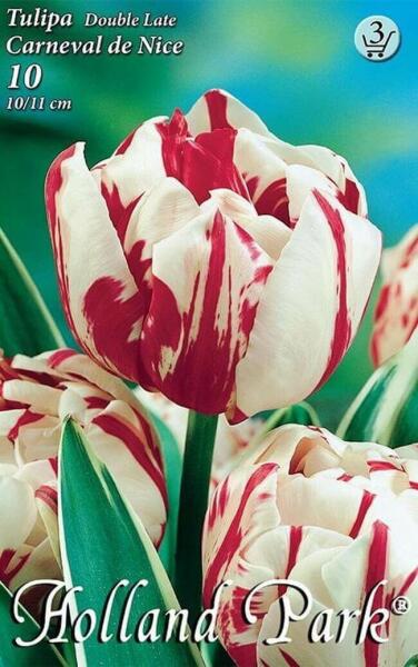 Tulipa Double Late Carneval de Nice teltvirágú tulipán virághagymák Virághagyma körmérete: 10/11 cm Javasolt ültetési ideje: IX. -XII. Virágzás ideje: IV. -V. Javasolt ültetési távolság: 10 cm Javasolt ültetési mélység kb. : 10 cm Növény várható magassága kb. : 45 cm Ezek a korai virágzású tulipánok már áprilisban nyílnak és különösen alkalmasak ágyások, virá