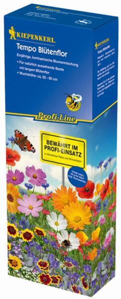 Kiepenkerl Tempo Blutenflor, tempós virághalom virágmagkeverék Ez az egynyári, nagy kontrasztú keverék a vetés után 40-50 napon belül kel ki. Gyorsan virágzik, virághalmát hosszú hónapokig megõrzi. A virágkeverék ideális a természetes megjelenésű ágyásokhoz. Gyors növekedése ideálissá teszi olyan területeken, amelyek csak az év végén érhetõk el. Humuszban gazdag,